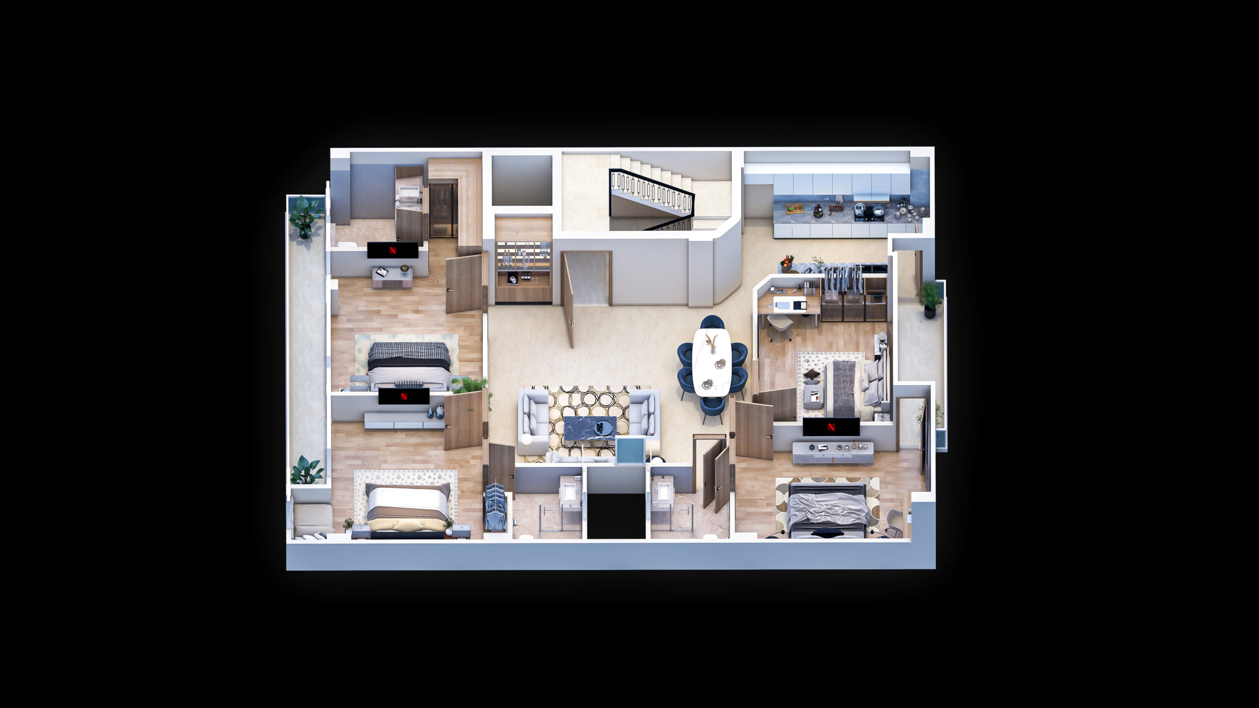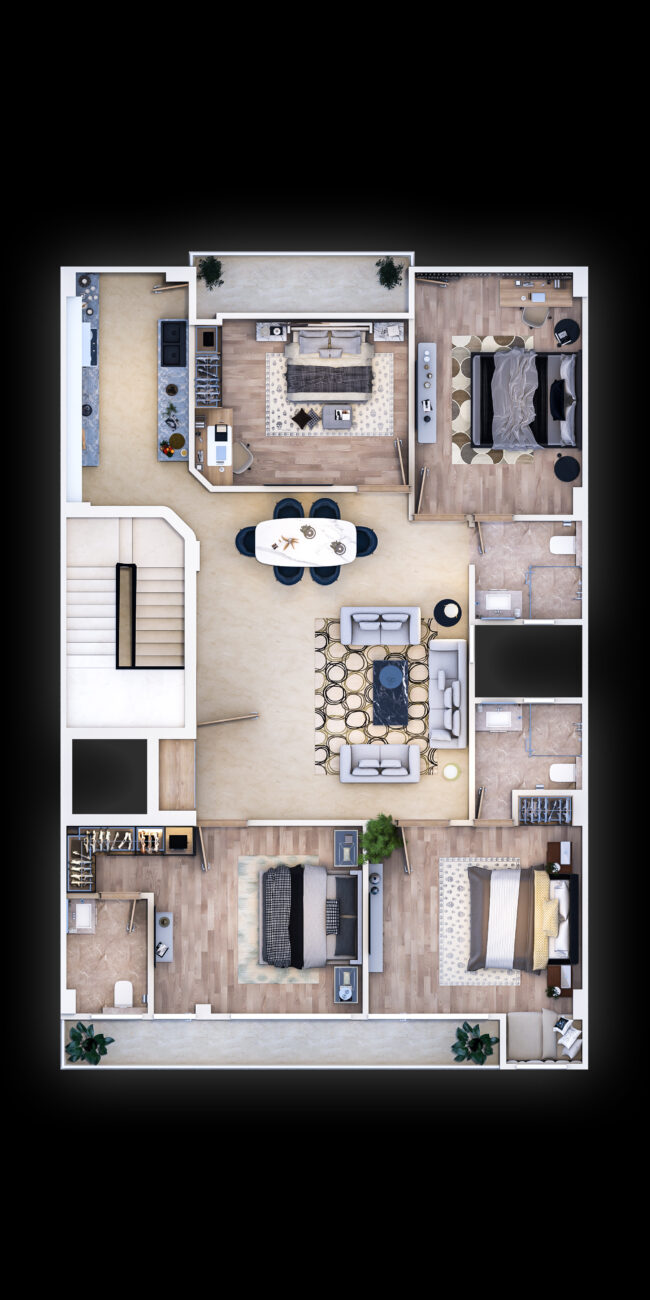 Crafted for growing or joint families, the 4-bedroom apartment offers a harmonious blend of space, luxury, and practicality. The layout is thoughtfully planned to cater to each family member’s needs while maintaining a collective design flow. The master suite is enhanced with comfort features, while secondary rooms are designed for flexibility—ideal for children, guests, or as a home office.